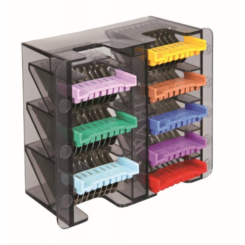Peines metálicos deslizables en plásticos. Longitud de corte deseada progresivamente utilizando una gama de diferentes tamaños de peine disponibles.