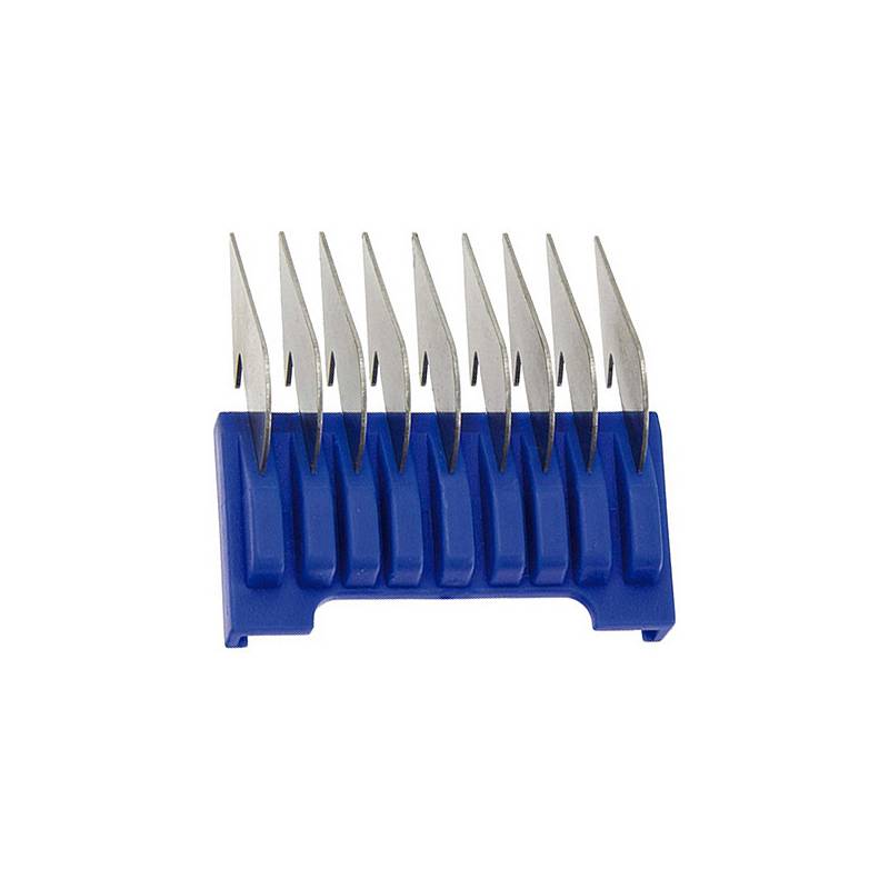Peines metálicos deslizables en plásticos. Longitud de corte deseada progresivamente utilizando una gama de diferentes tamaños de peine disponibles.