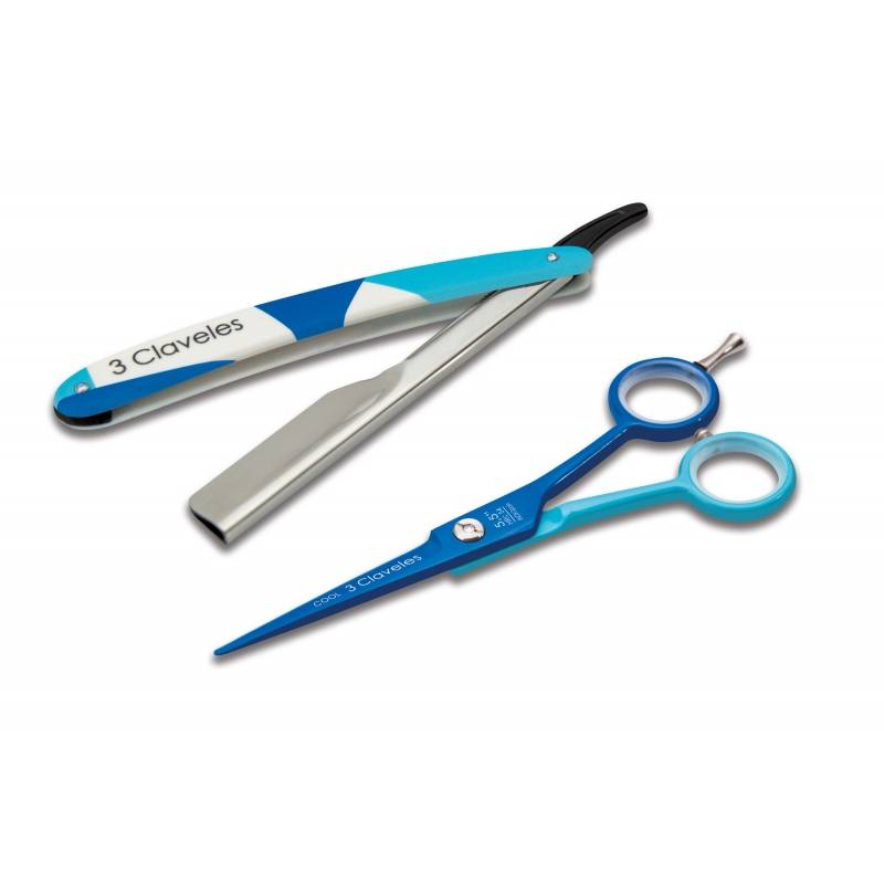 3 Claveles Tijera Cool + Navaja Hrc54 Filo Suave 5.5 Pulgadas Azul Ref. 19178