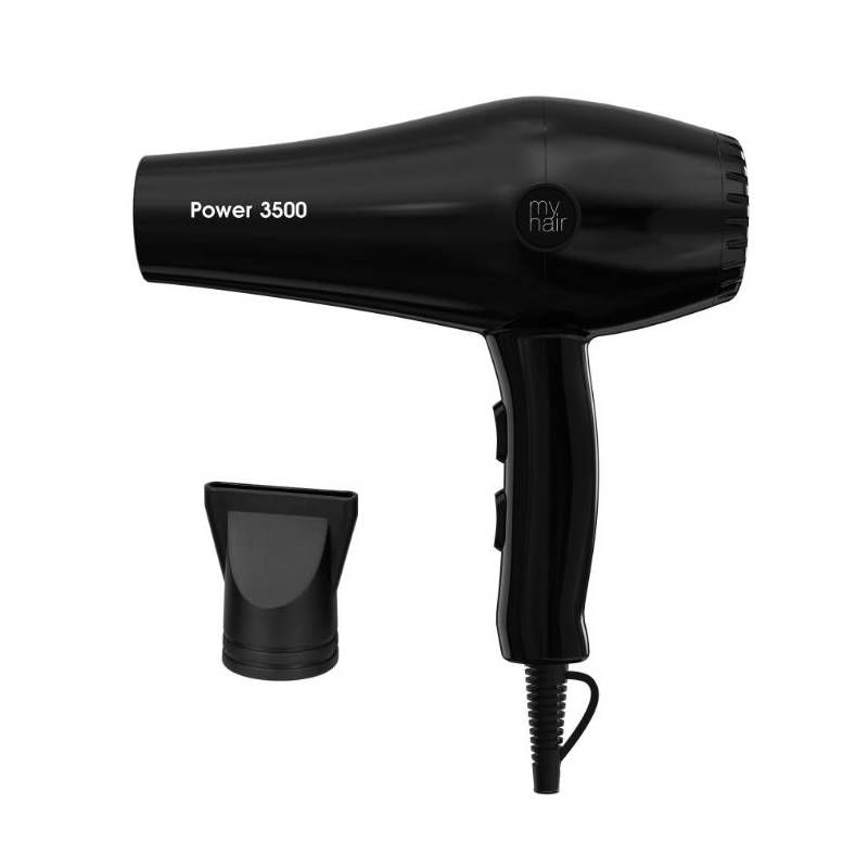 Secador Power 3500 negro 2000W de MYHAIR: Experimenta la excelencia en el secado con nuestro secador profesional de 2000W, que ofrece una potencia superior para lograr un secado más rápido, un sellado efectivo y un pulido perfecto para tu cabello.