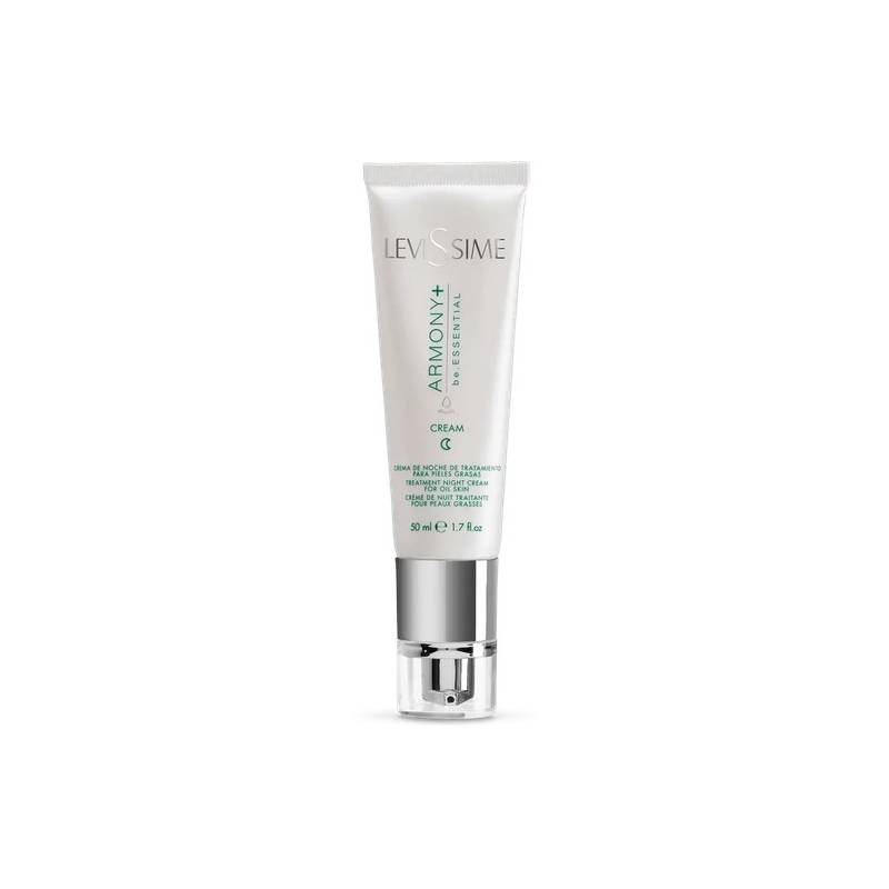 La Crema de Noche ARMONY+ be.Essential de Levissime es de textura ligera y está enriquecida con ácido Azeláico, Niacinamida, Betaína y activos calmantes y regeneradores. Su fórmula tiene propiedades regeneradoras y calmantes que reducen el acné y proporcionan una piel matificada, mejorando además la función barrera de la piel.
